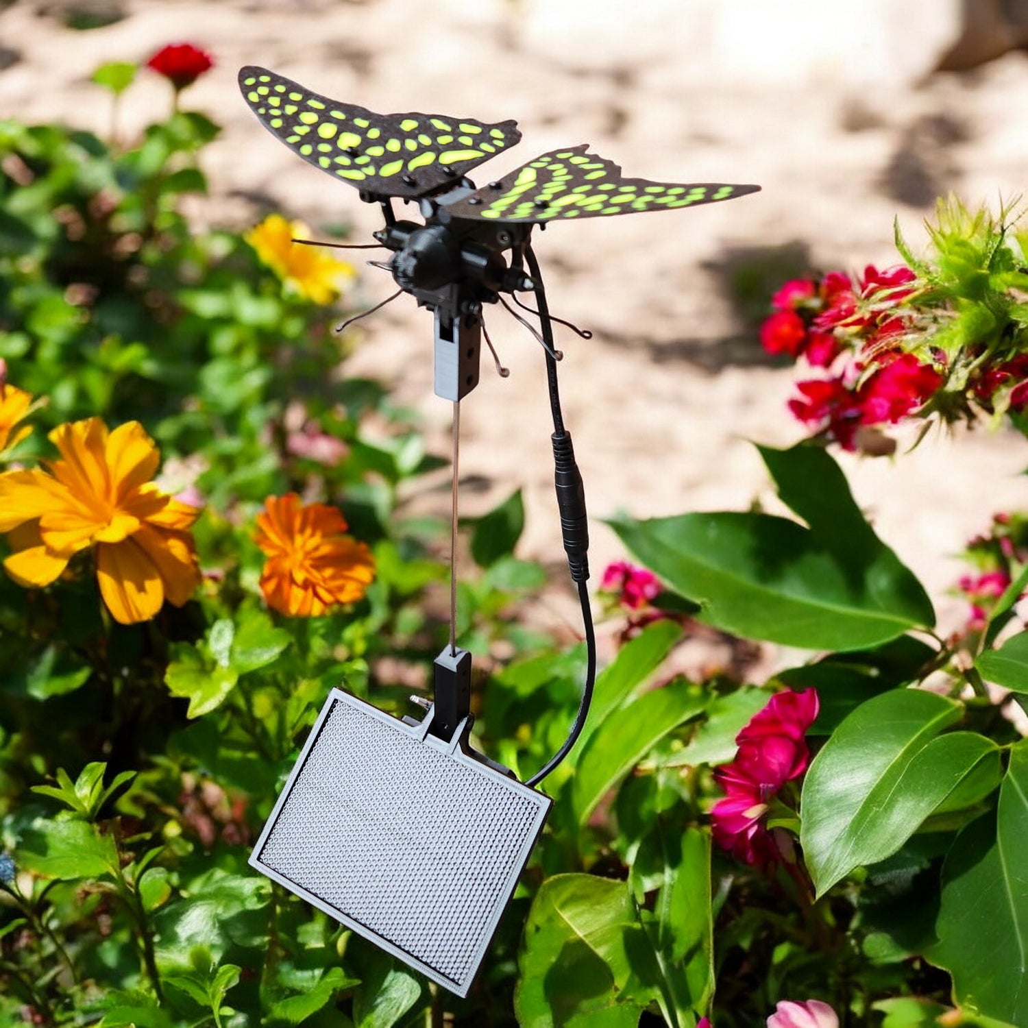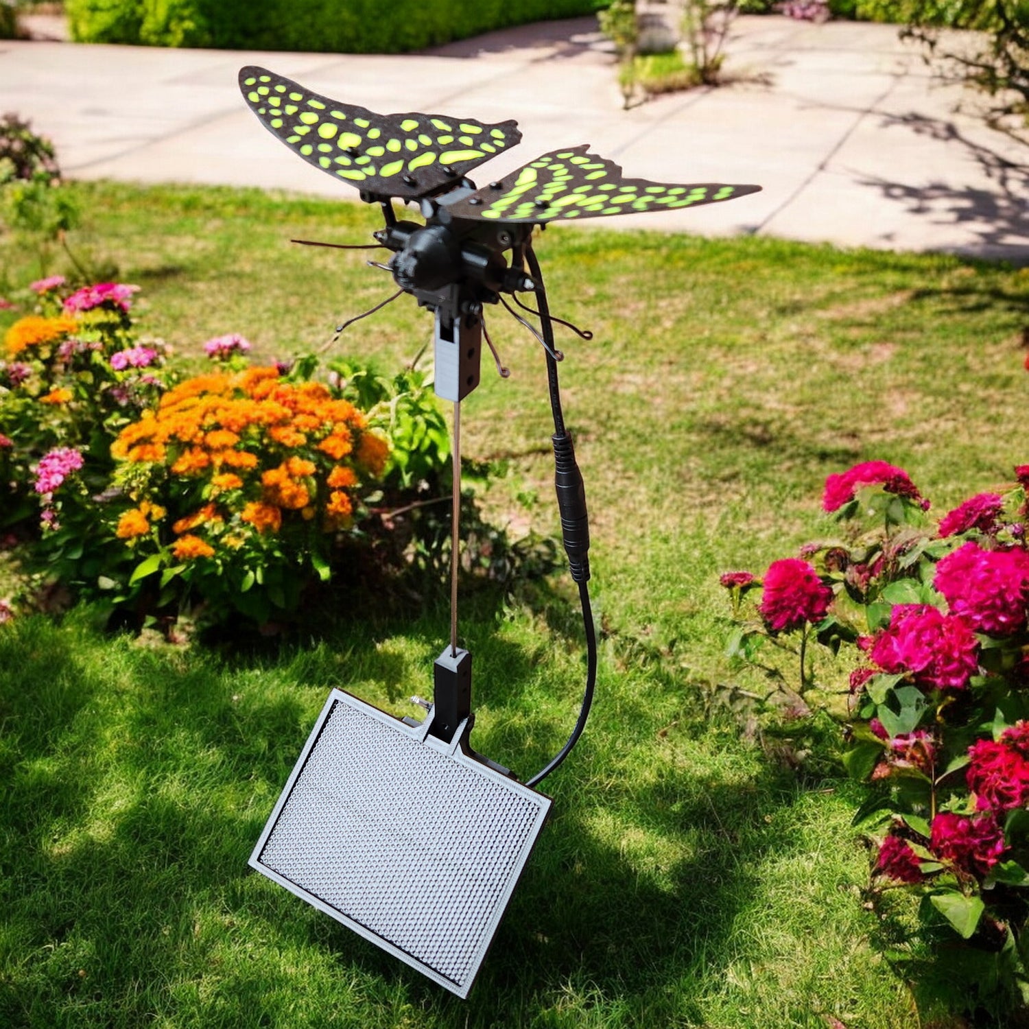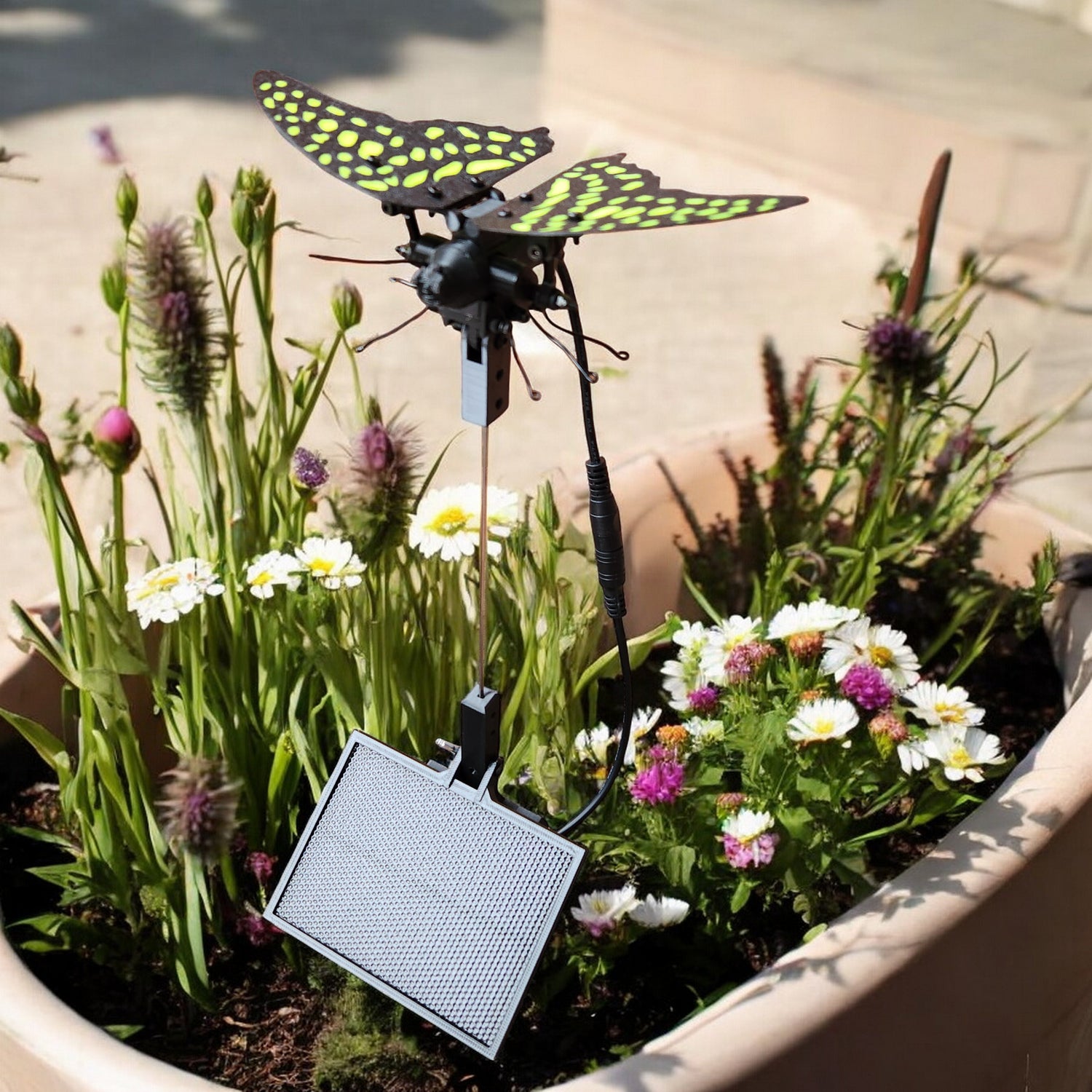 The butterfly is 3D-printed using PETG plastic, which is resistant to heat and UV exposure.